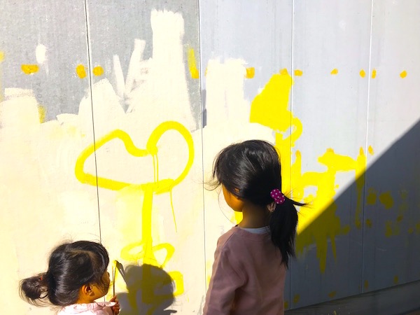 先日地元諫早のちびっ子たちと壁に落書きをしました。
