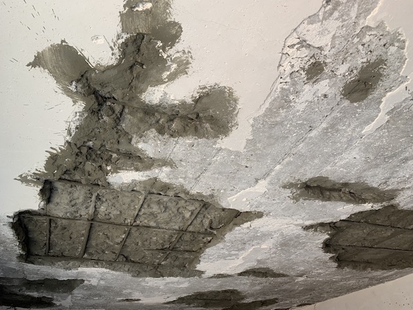 写真は、コンクリート天井が劣化して脱落したところの補修工事中のもの