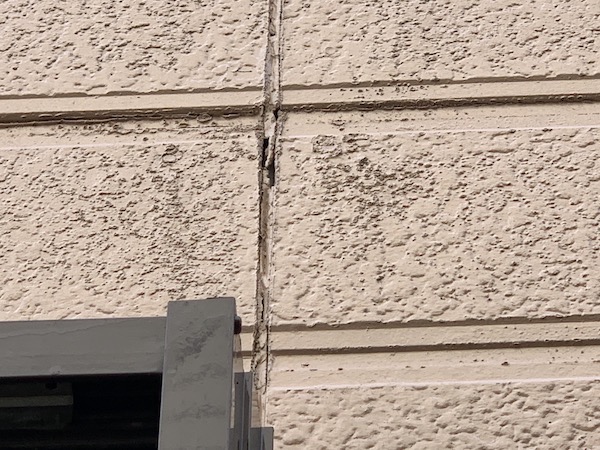 数年前に塗り替えされた家でしたが、シーリングが切れたまま上だけ塗ってるもの。