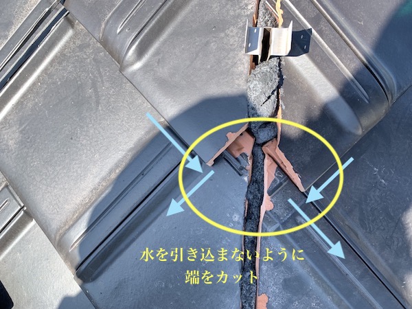 写真のように瓦の端をカットして、