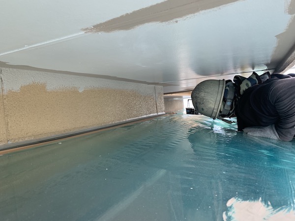 ちょうど狭いところの軒裏を仕上げているところ。