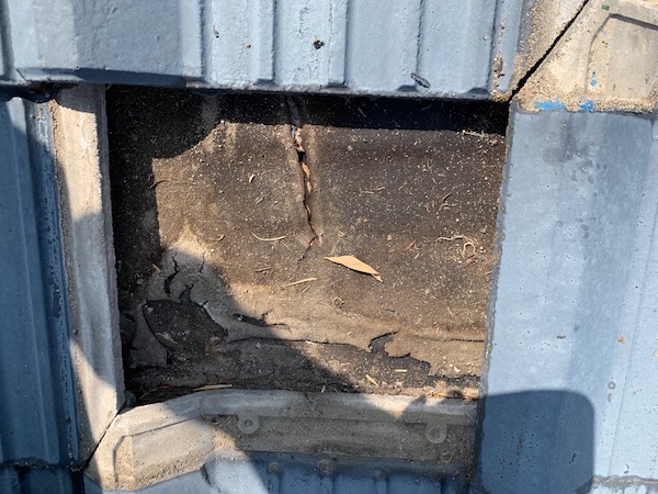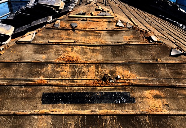 ルーフィングシートが劣化で横に裂けているところがありました。