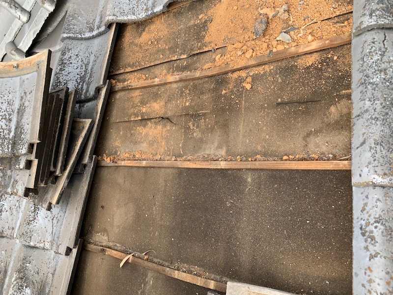 開けてみたら、瓦の下に敷いてある