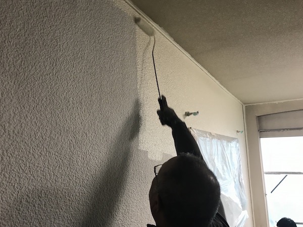 梅雨時夏場の塗装工事中もエアコンは使えるので快適です