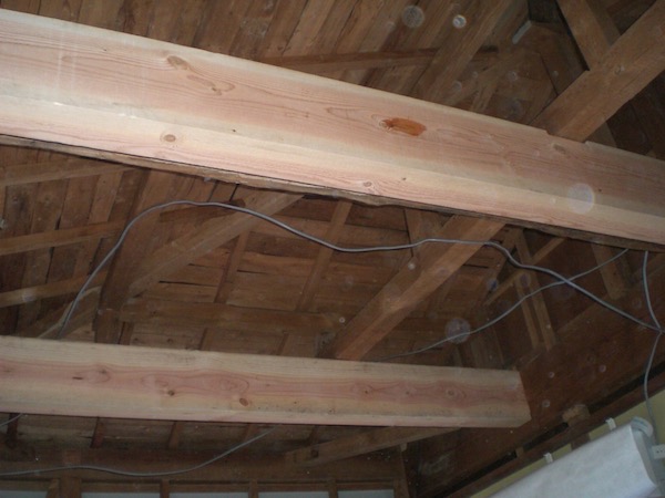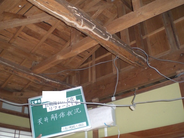 和室天井を取り壊して、内部より耐震補強を行いました。
