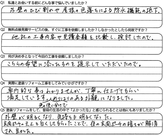 外壁が明るくなり気持ちも明るくなった。 長崎市S様