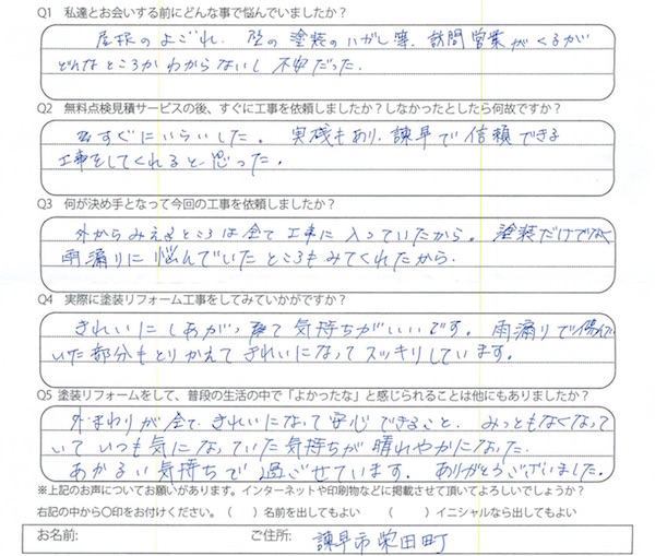 【外壁屋根塗装】実績もあり諫早で信頼できる工事をしてくれると思った。 諫早市N様